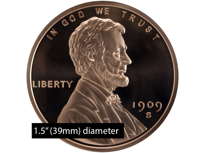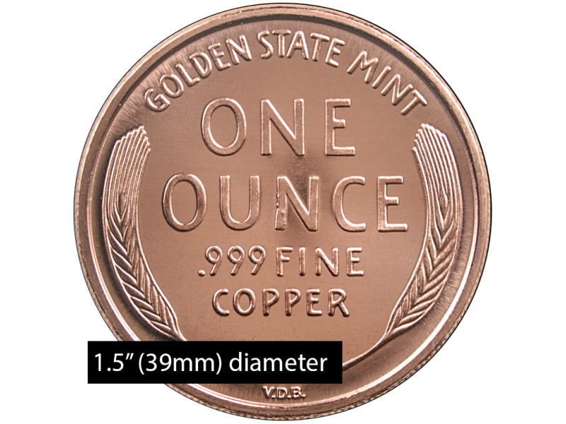 1 oz Copper Lincoln Wheat Penny - Dollar Size (39mm)