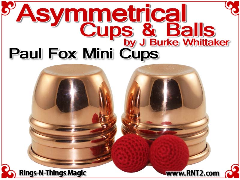 Mini size cups: Paul Fox Mini Cups set specifically for the Asymmetrical Cups and Balls by J. Burke Whittaker.