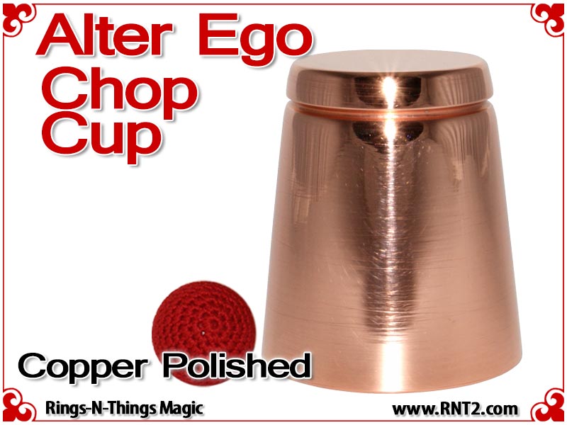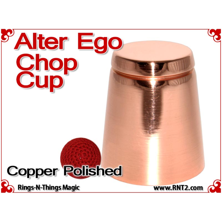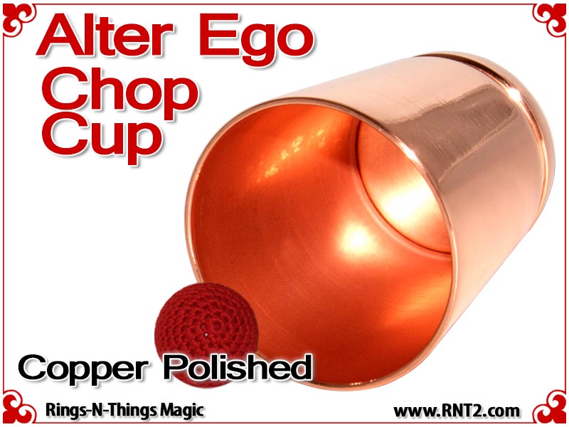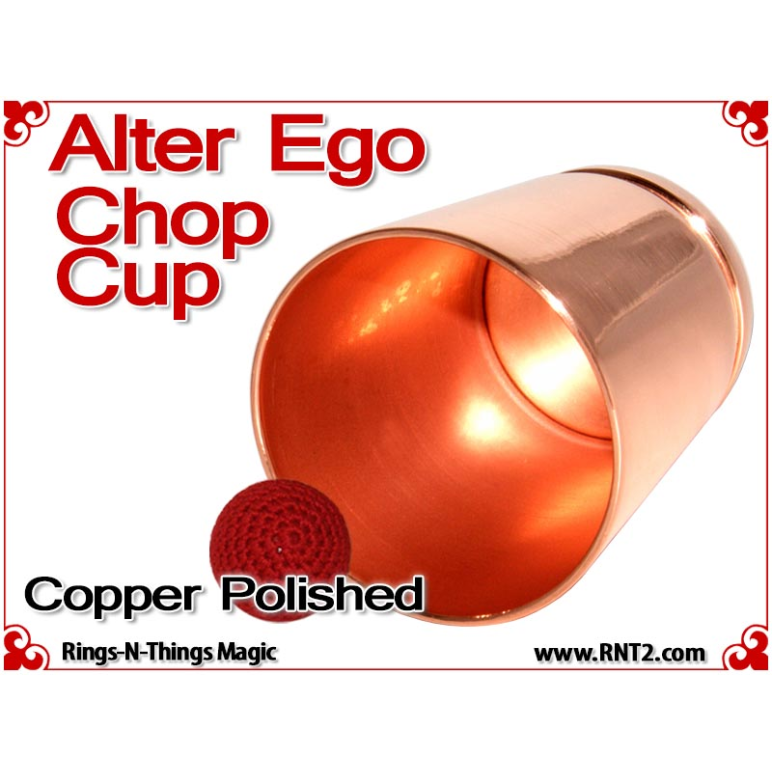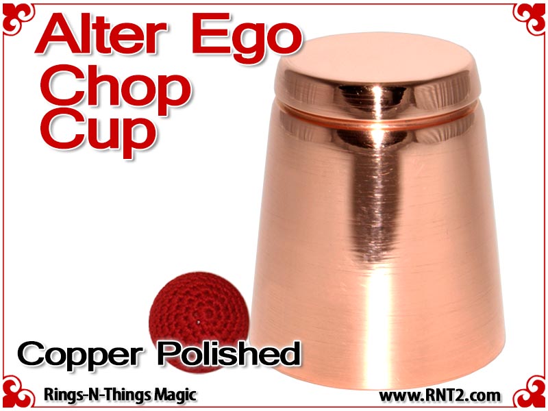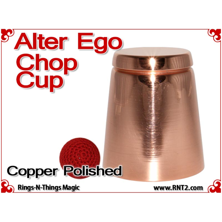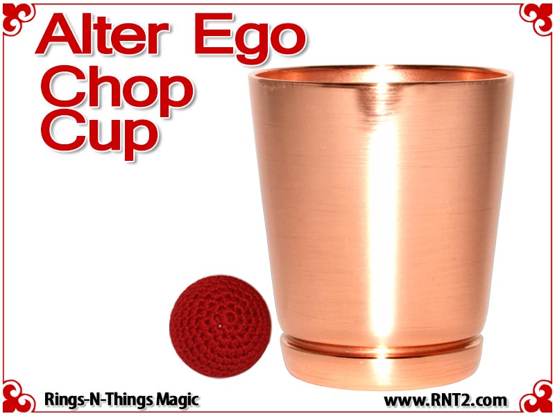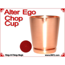 The Alter Ego Chop Cup design incorporates a straight wall with a flat bottom that presents an innocent look. The cup is often referred to as a "shot glass" by performers and is ideal for performing close-up bar magic or magic in the hands of the spectators at cocktail parties.