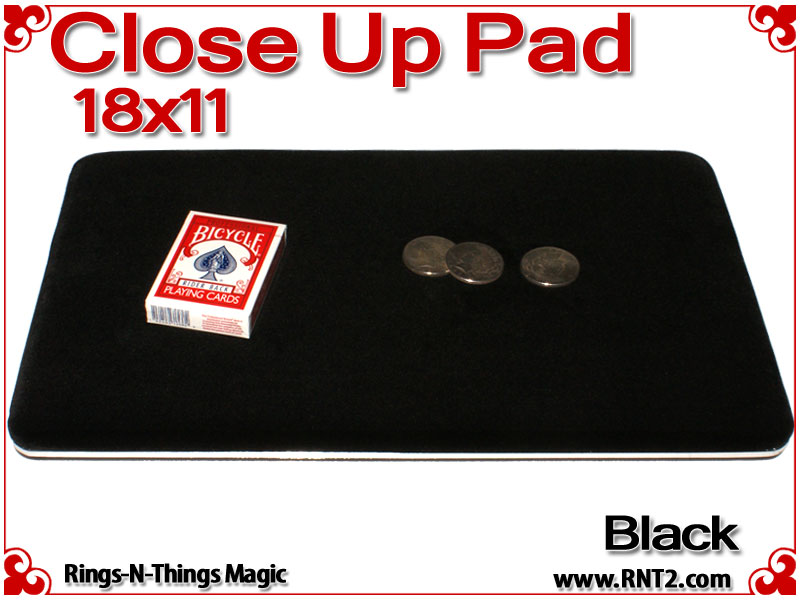 Designed specifically for coin magic, the Rings-N-Things Close Up Pad is a sophisticated performance surface designed to enhance the presentation of your close up show and your rehearsals. It comes with its own fabric carrying case and at 18" x 11" provides a large enough surface to work with while still fitting into carry-on luggage.