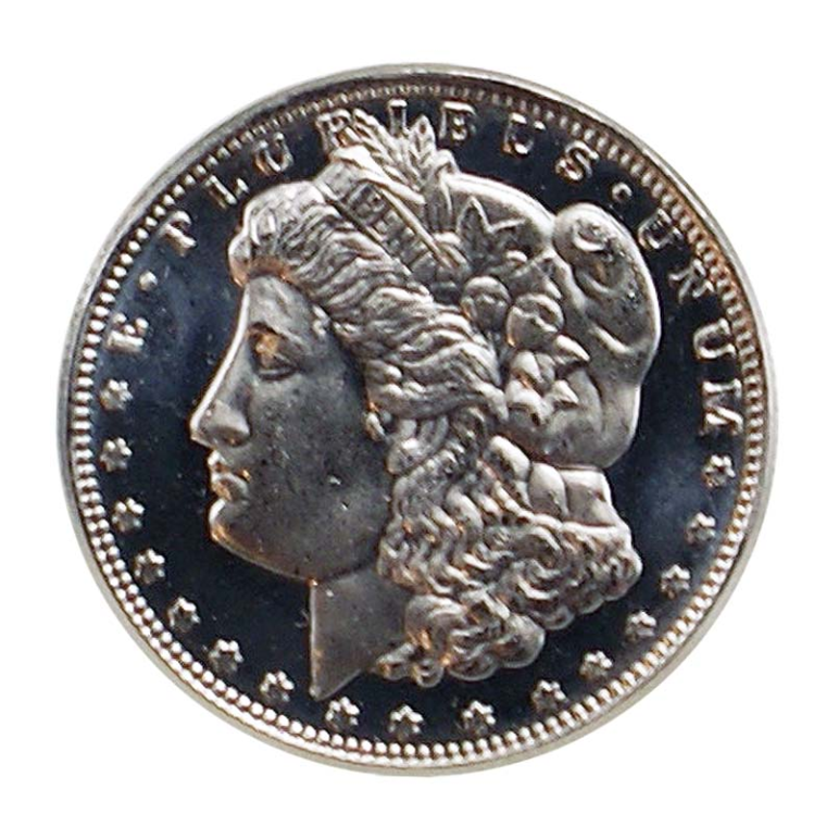 The obverse (front) is a recreation of the Morgan Dollar. It depicts a profile portrait representing Lady Liberty wearing a Phrygian cap with the motto “LIBERTY" inscribed in the headband. The reverse (back) depicts an eagle with wings outstretched.