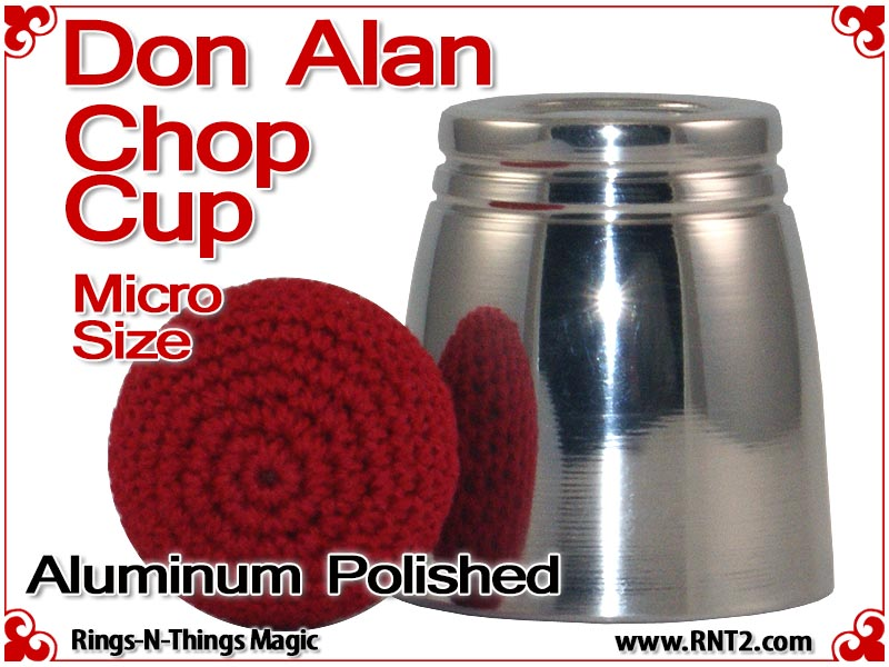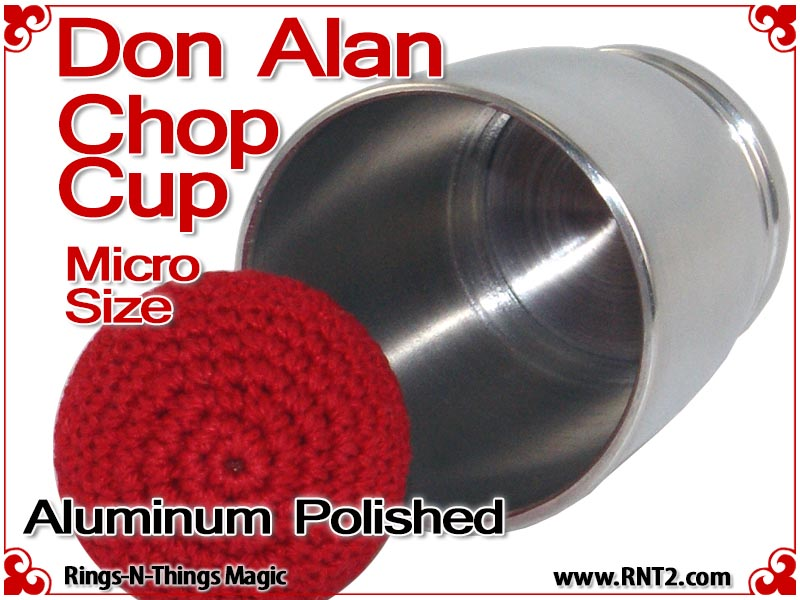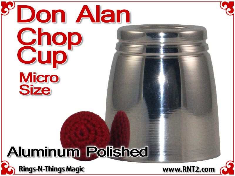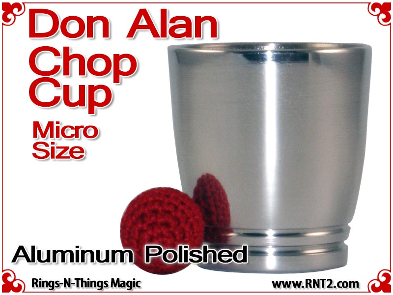 The Don Alan Petite Chop Cup is an elegant and deceptive powerhouse for strolling magicians. The Don Alan Petite Chop Cup gives magicians the power of a one cup routine any place, and any time. This cup is small enough to carry in your pocket yet provides a powerful tool for a sleight of hand artist. The Don Alan Petite Chop Cup design incorporates a curved radius and dimpled bottom that is the trademark of the Don Alan Chop Cups making it one attractive little cup.