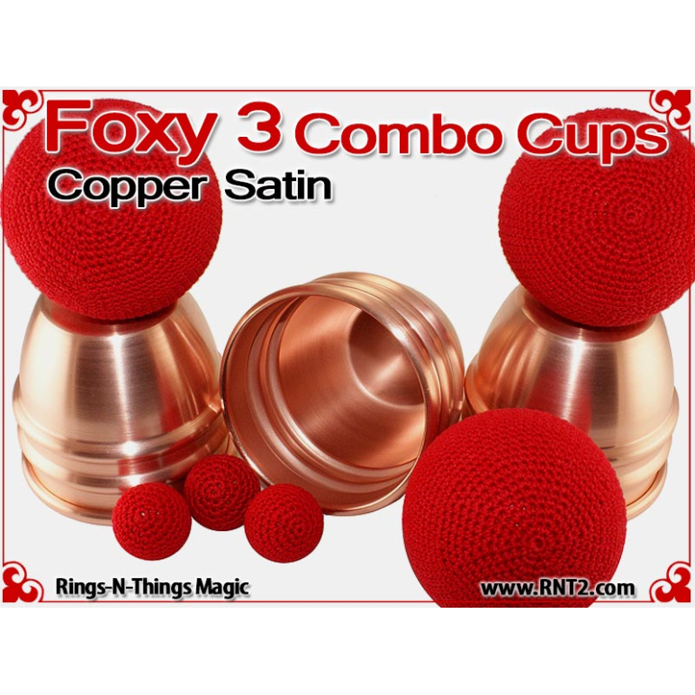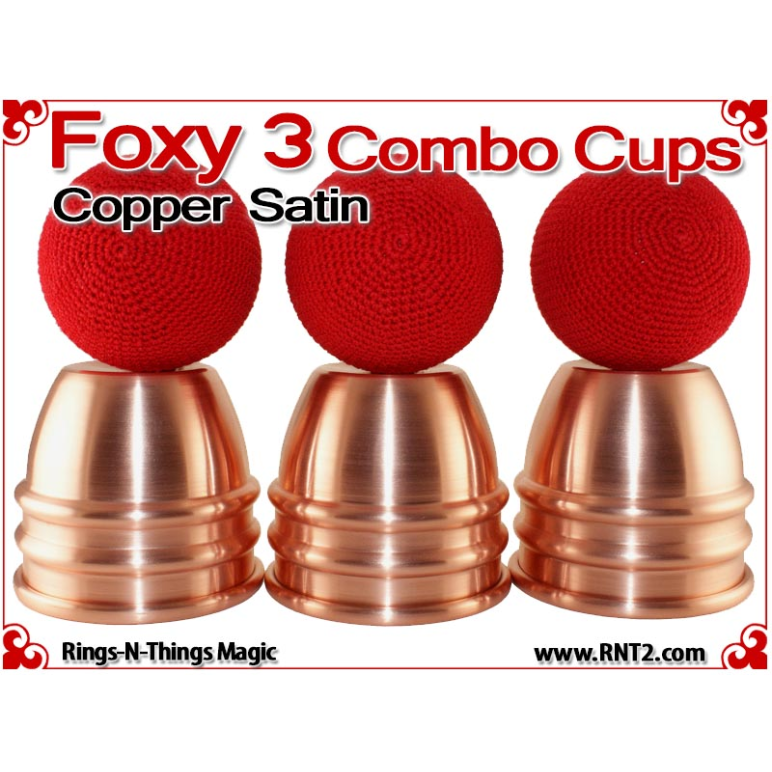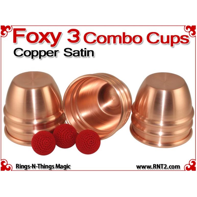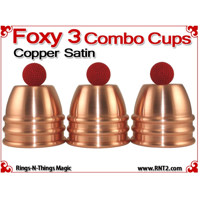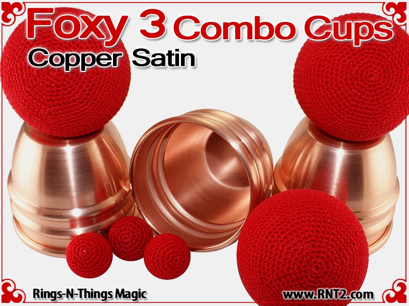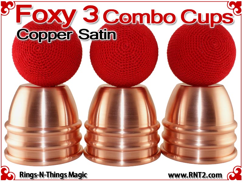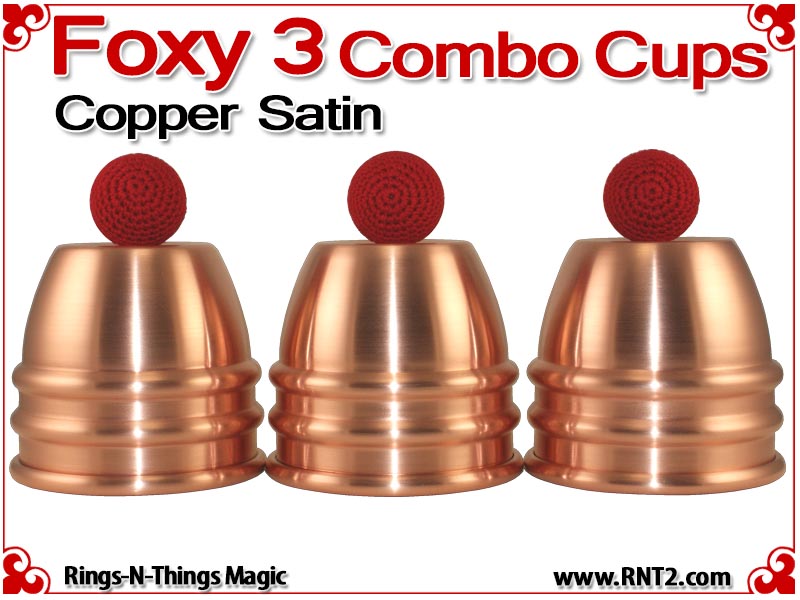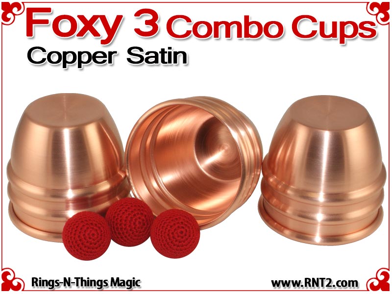 The Foxy 3 Combo Cups are our NEWEST generation of the Rings-N-Things Foxy style of cups for cups and balls. The Foxy 3 Combo cup design incorporates all the features of the Foxy 3, including two center beads, a shallow dimple in the saddle that automatically centers and elevates balls rested there, and a drastic radius in the rounded top that amplifies the size of the final load ball.