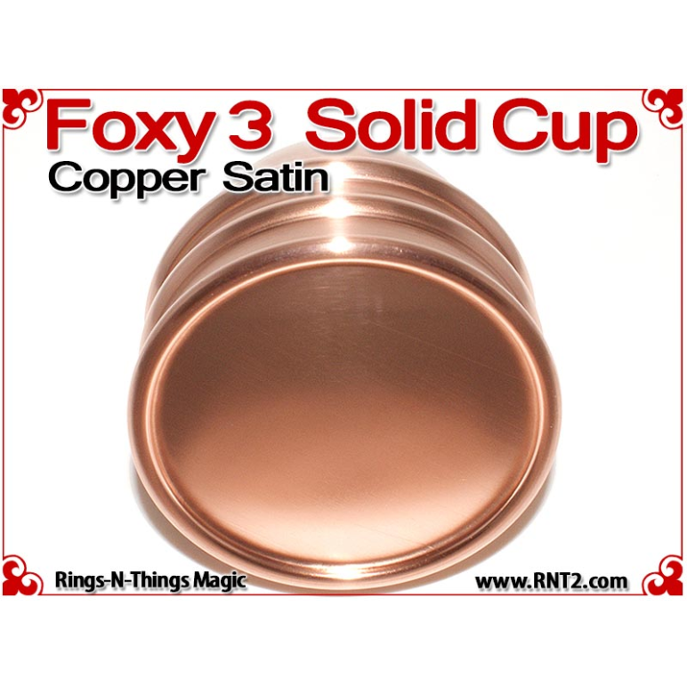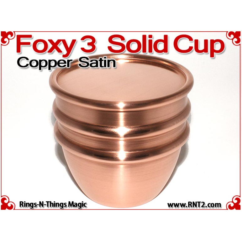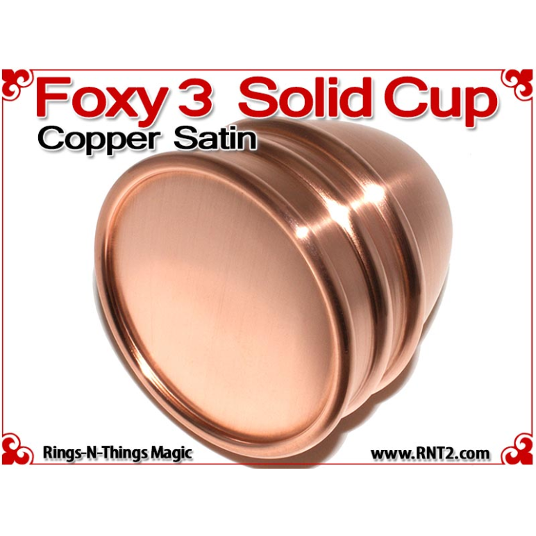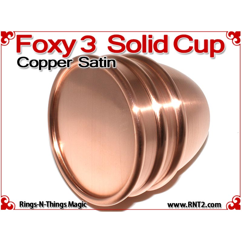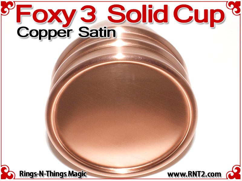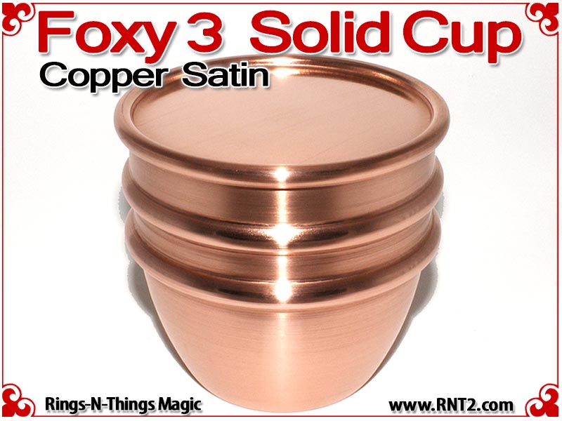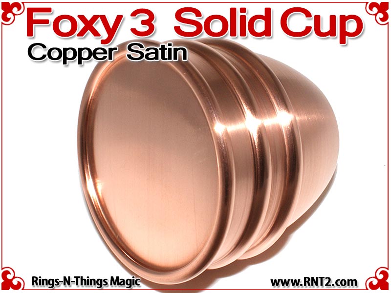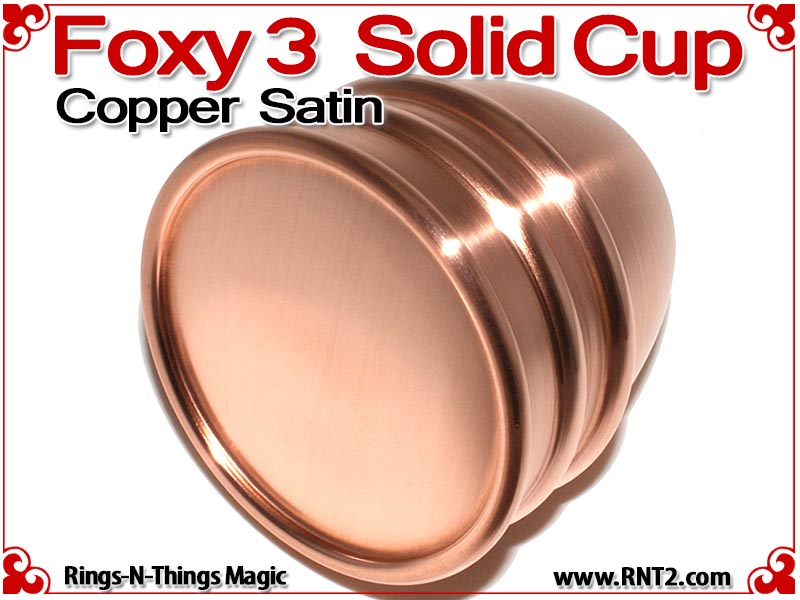 Available for the first time is a SOLID Foxy 3 Cup for many Kicker and Sucker effects. OK, it's not really a solid hunk of copper - if it was it would cost a fortune, but it's the next best thing. You cannot tell the difference between this cup and a standard set of Foxy 3 Cups, and it looks and feels for all the world like a solid hunk of copper!