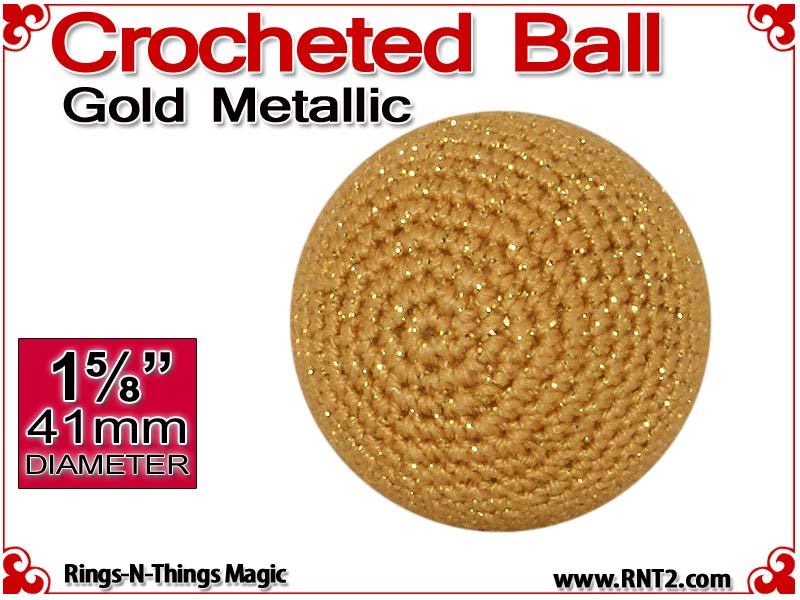 Our Gold Metallic Crochet Ball | 1 5/8 Inch (41mm) is slightly smaller than a golf ball and created for our Don Alan Mini Chop Cups. Constructed from 1 1/2 inch wood core balls and expertly crocheted by hand, they make stunning loads for cups with narrower inner diameter mouths. Because of their smaller diameter they are excellent for palming in the hand as they will fit comfortably in finger palm.