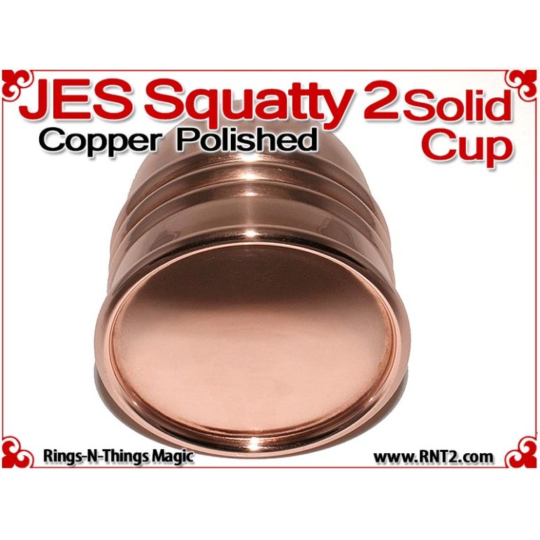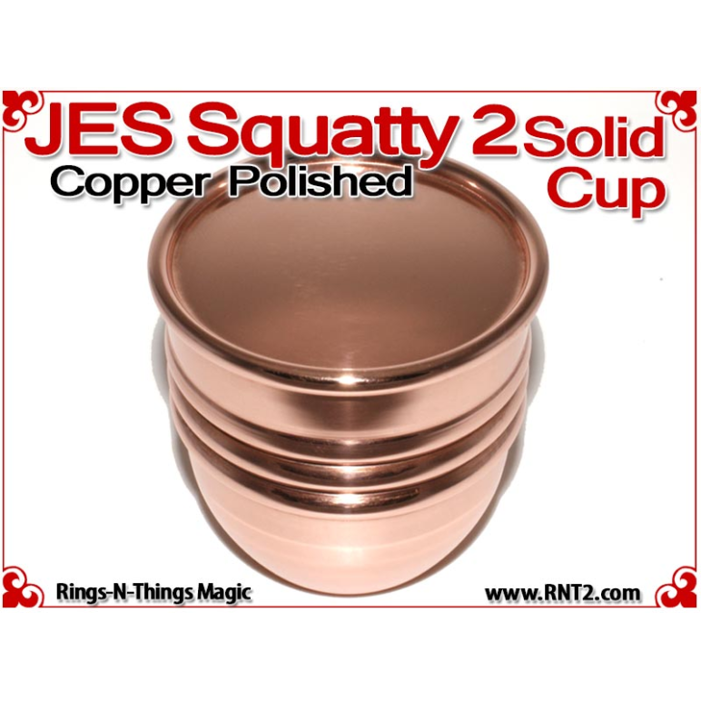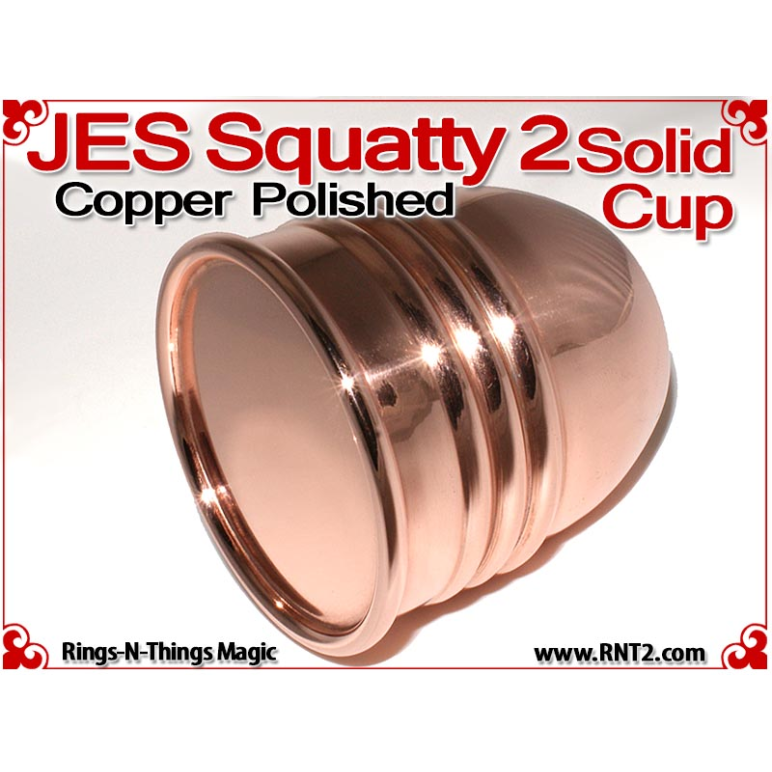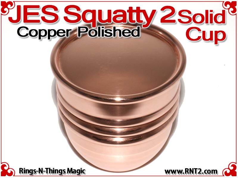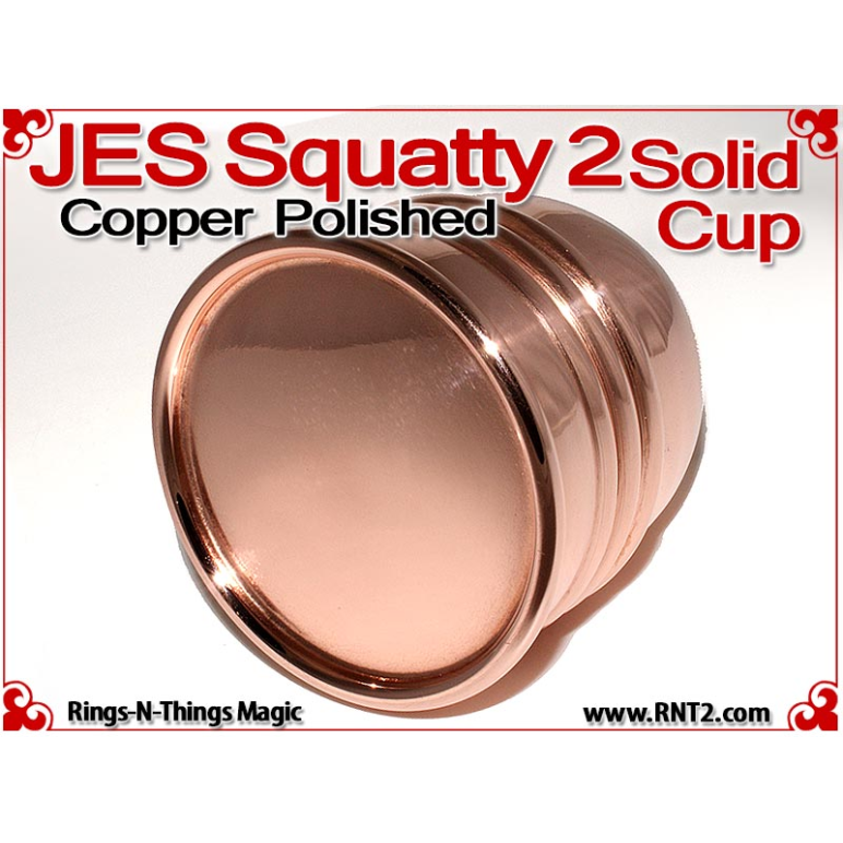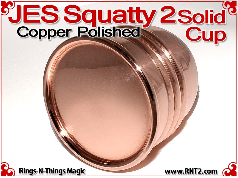 Available for the first time is a SOLID JES Squatty 2 Cup for many Kicker and Sucker effects. OK, it's not really a solid hunk of copper - if it was it would cost a fortune, but it's the next best thing. You cannot tell the difference between this cup and a standard set of JES Squatty 2 cups, and it looks and feels for all the world like a solid hunk of copper!