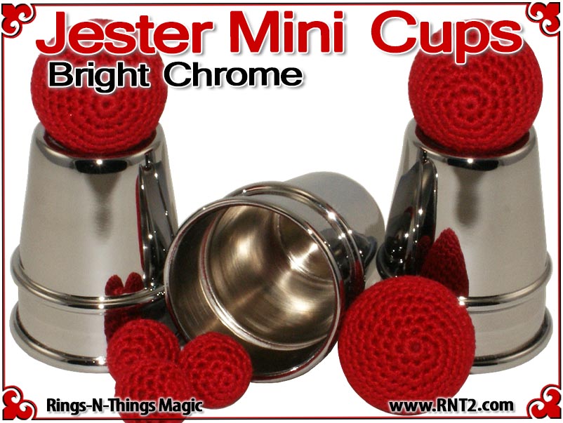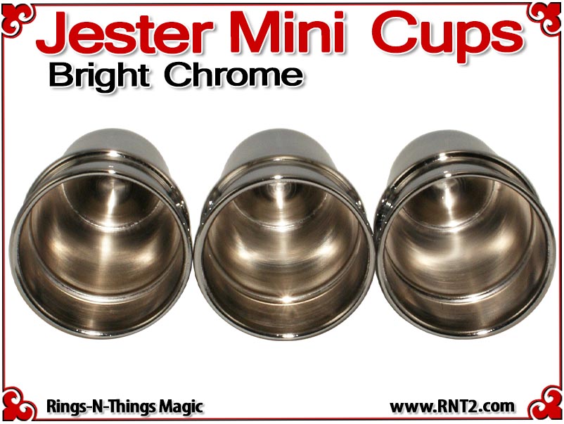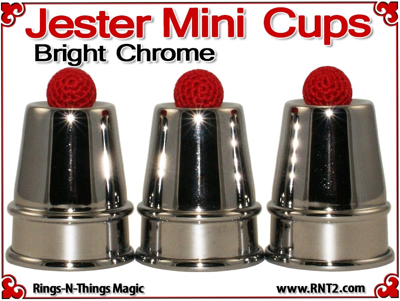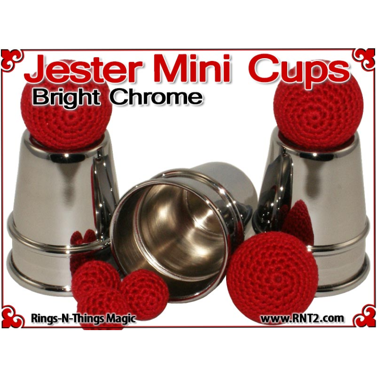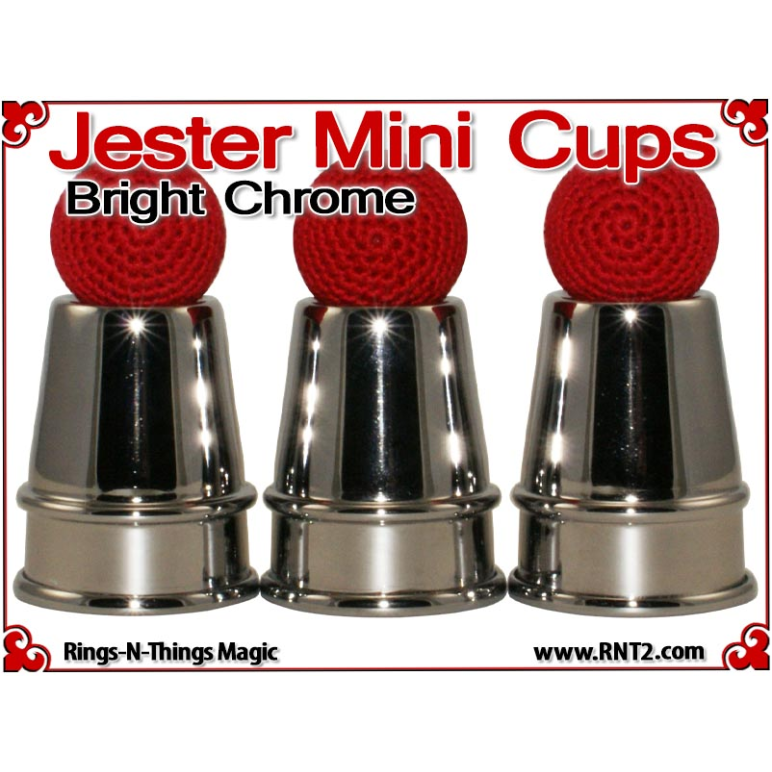 The Jester Mini Cups are a pocket size rendition of our tall Traditional Cups. This miniature set allows the cups and balls performer to bring a small set of cups to any venue and include a performance of the cups and balls in the most "close up" of situations. The design and shape of the cups invoke images of a Medieval Conjurer's cups.