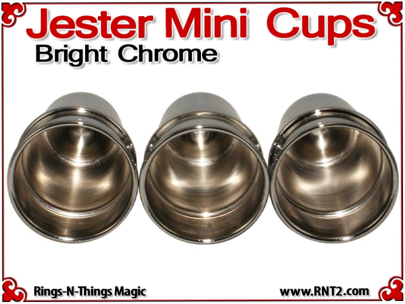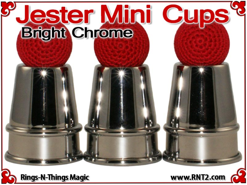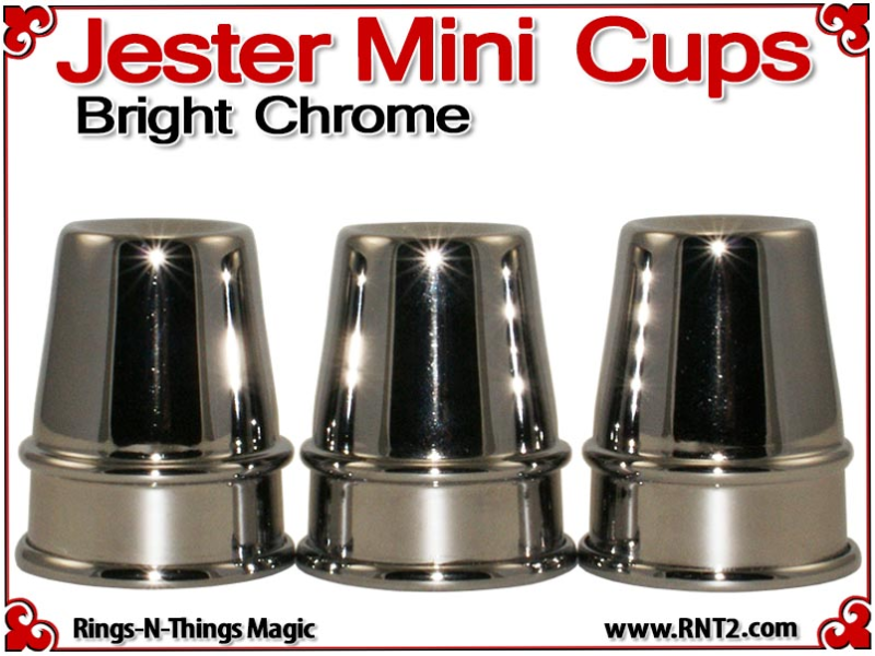 The Jester Mini Cups are a pocket size rendition of our tall Traditional Cups. This miniature set allows the cups and balls performer to bring a small set of cups to any venue and include a performance of the cups and balls in the most "close up" of situations. The design and shape of the cups invoke images of a Medieval Conjurer's cups.