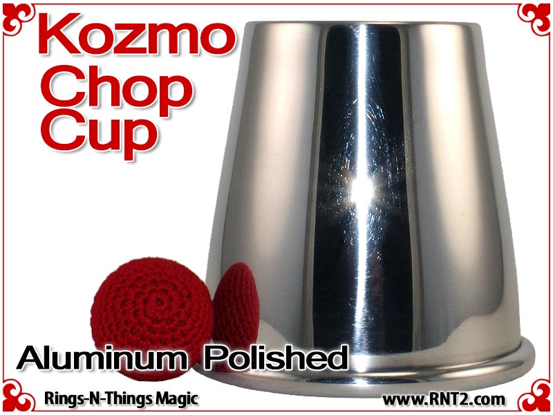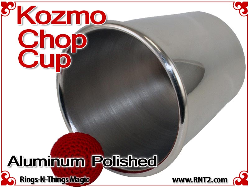 Kozmo Chop Cup | Aluminum | Polished Finish. The copper version of this cup is the cup used by street magician, and founder of Kozmo Magic, "Kozmo" in his busking performances and lectures - except this cup is in a lightweight aluminum version that is 1/3 the weight of our Kozmo Chop Cup in Copper.