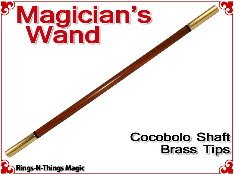 A one-piece shaft of Cocobolo hardwood, this Magicians Wand has a sophisticated look with Brass tips. Banding is made from an Ebony ring.
