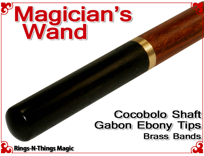A one-piece shaft of Cocobolo hardwood, this Magicians Wand has a sophisticated look with Gabon Ebony tips. Banding is made from Brass rings.