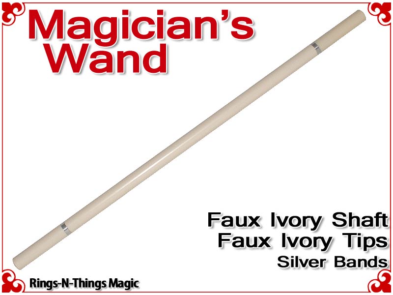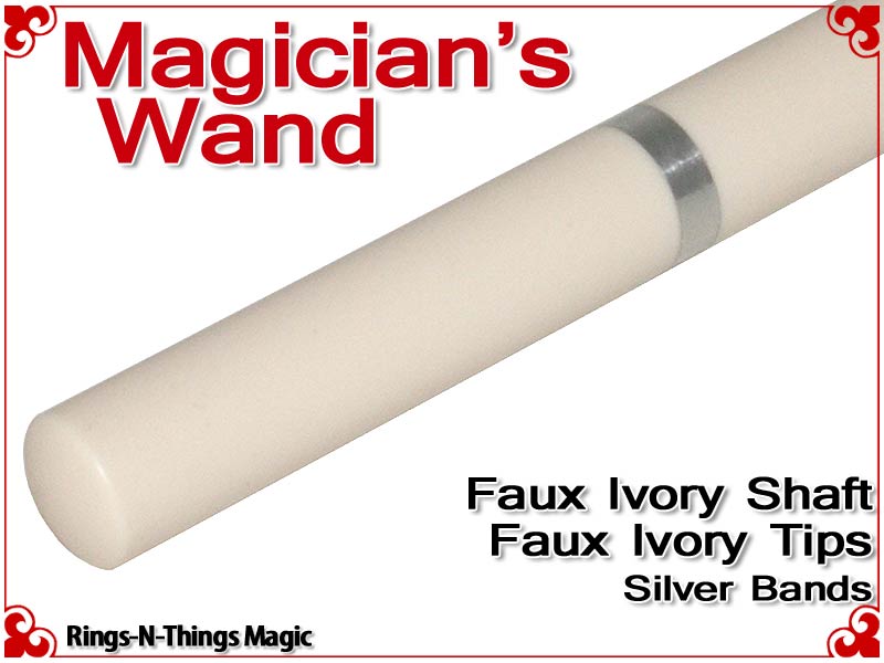 A one-piece shaft of faux Ivory, this Magicians Wand has a MAGNIFICENT look with matching ivory tips and silver bands.