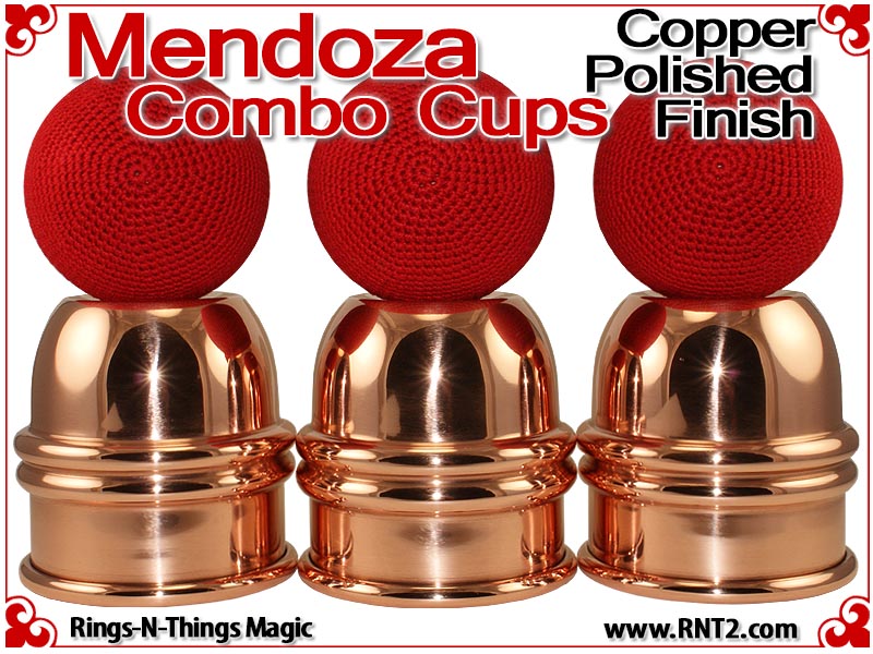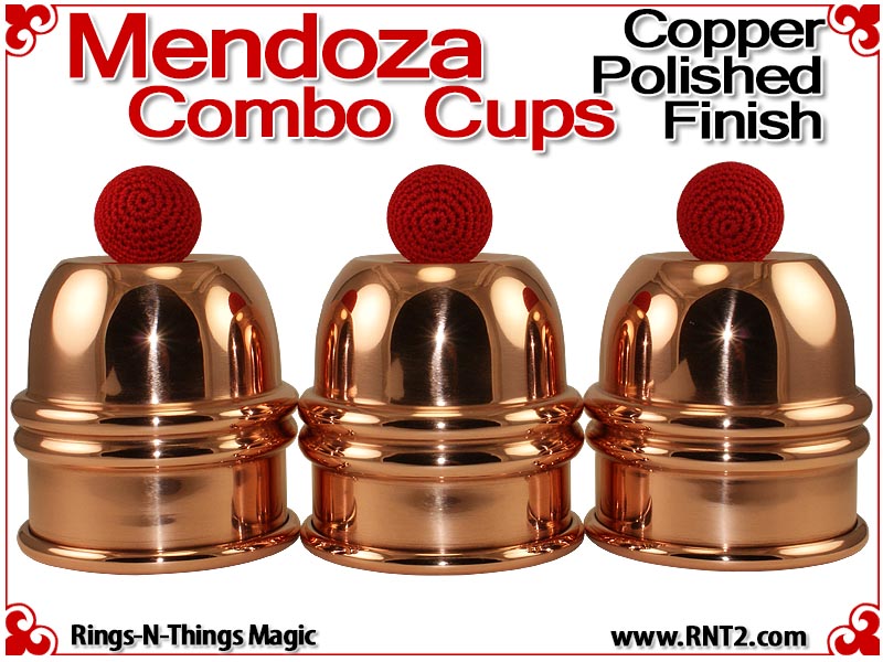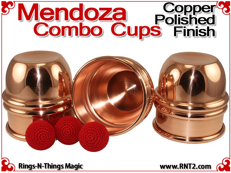 "I have spent the last four years looking for the perfect set of Combo cups for my Mendoza Cups & Balls routine. I have tried virtually every cup maker you can imagine, from the low-end cheap cups to the very highest end silver cups and every maker in between, including some very nice attempts from RNT II. I have had no success. To my absolute delight, RNT II has now succeeded in making the perfect cups. Their feel and weight is perfect. All three cups have the same feel and weight. The release is as close to perfect as one can get, and the size holds a big load without looking like a big cup. I honestly cannot recommend any cup more highly for the Mendoza Cups & Balls Routine." John Mendoza