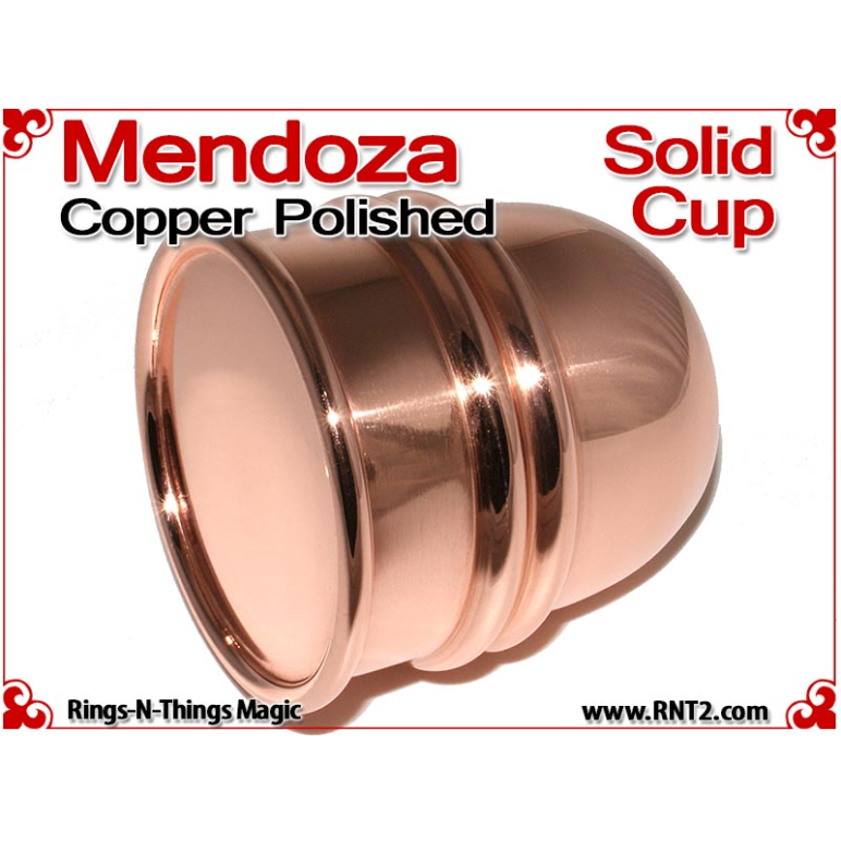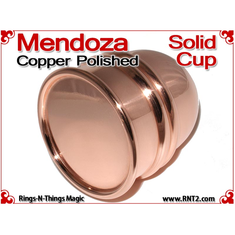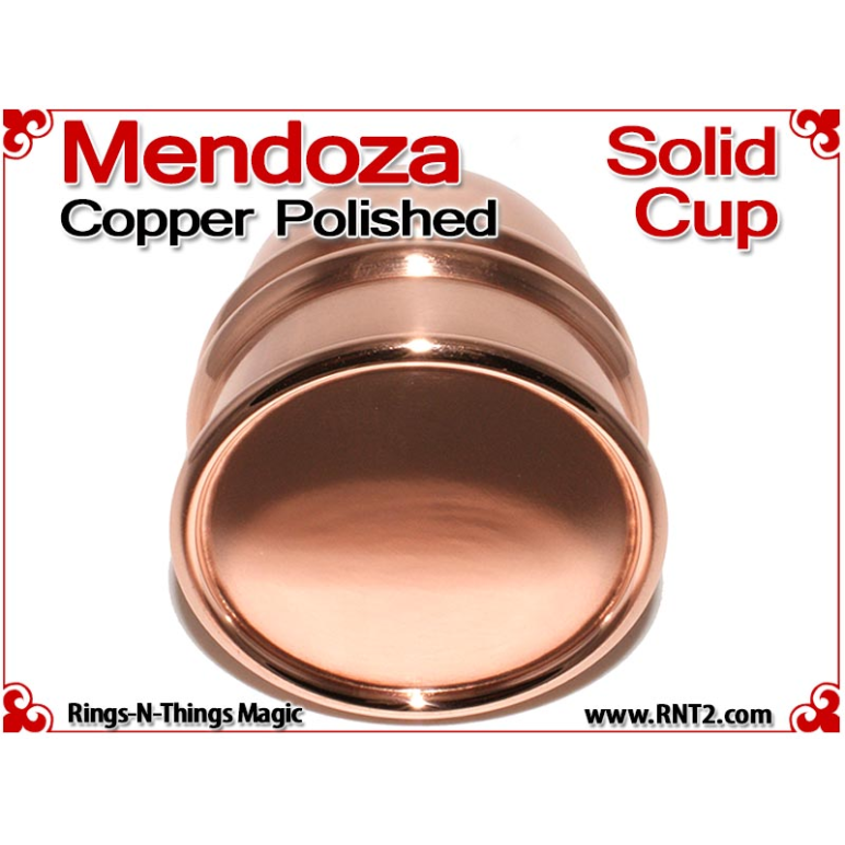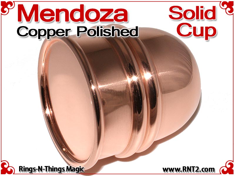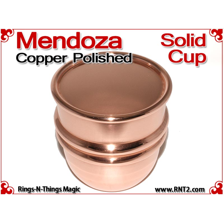 Available for the first time is a SOLID Mendoza Cup for many Kicker and Sucker effects. OK, it's not really a solid hunk of copper - if it was it would cost a fortune, but it's the next best thing. You cannot tell the difference between this cup and a standard set of Mendoza Combo Cups, and it looks and feels for all the world like a solid hunk of copper!