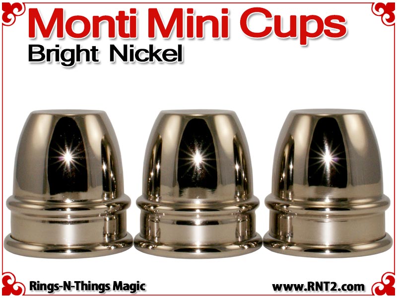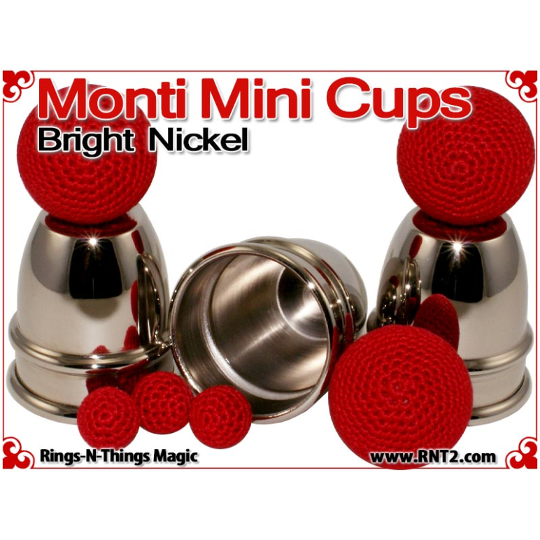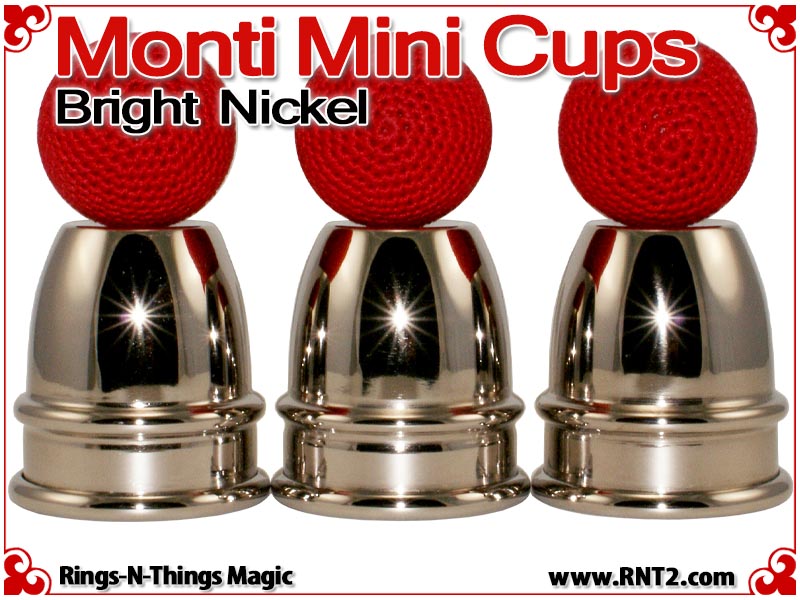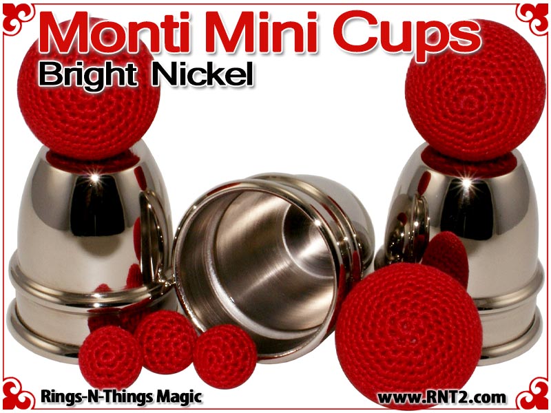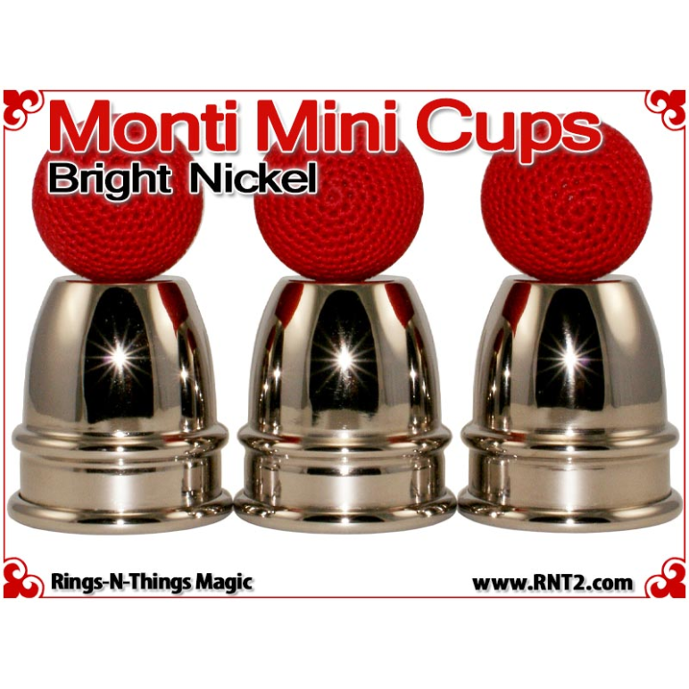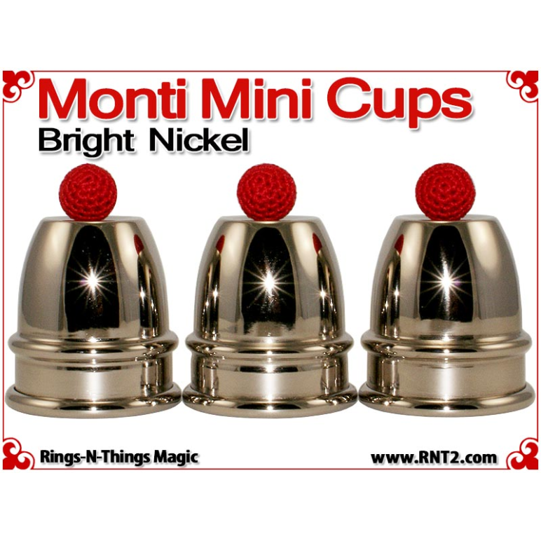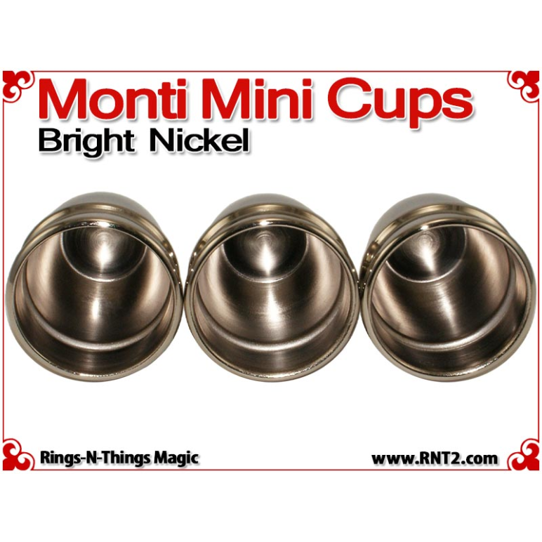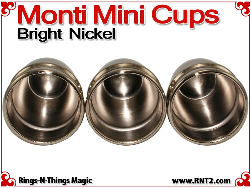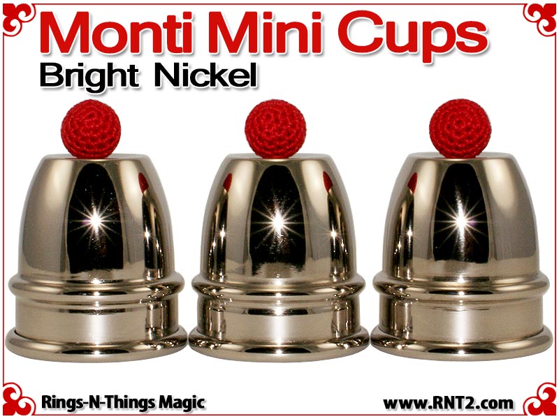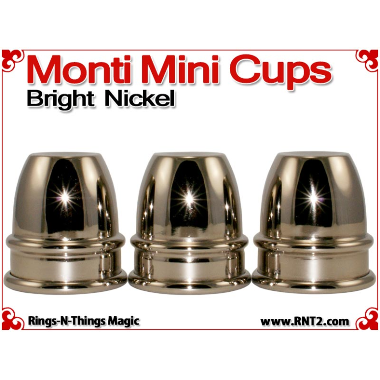 Monti Mini Cups render the sleek look and feel of the original Harry Monti style of cups in a classic miniature design. Weighing just 4.5 oz and a pint sized height of just under 3 1/2" for a stack of three, these cups are light enough and small enough to travel with you effortlessly. However, their design allows you to perform strong professional cups and balls moves with them.