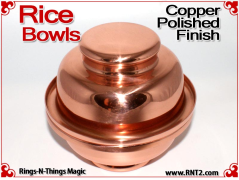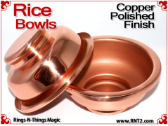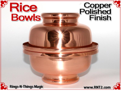 The magician shows an empty bowl and fills it with rice. A second bowl is placed mouth down over the full bowl. The rice doubles in quantity! The magician then levels the rice out of the bowl and again places the two bowls together mouth to mouth. The rice turns to water!