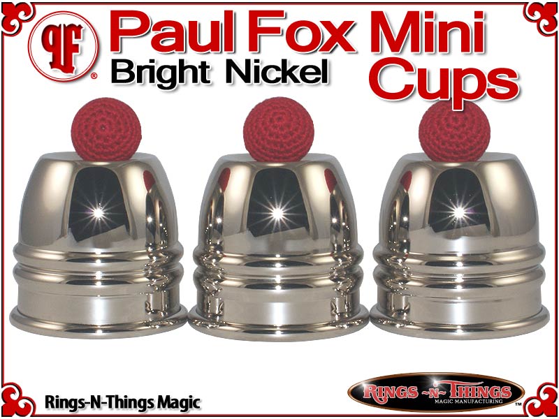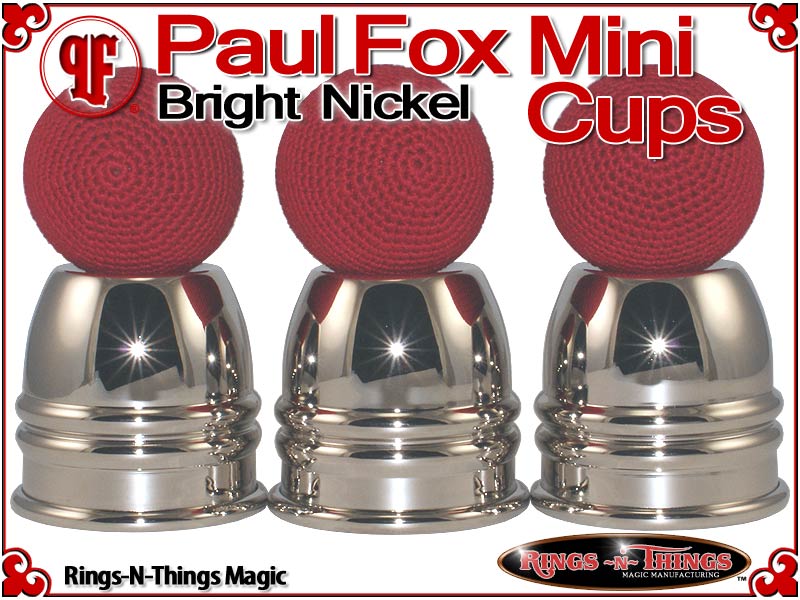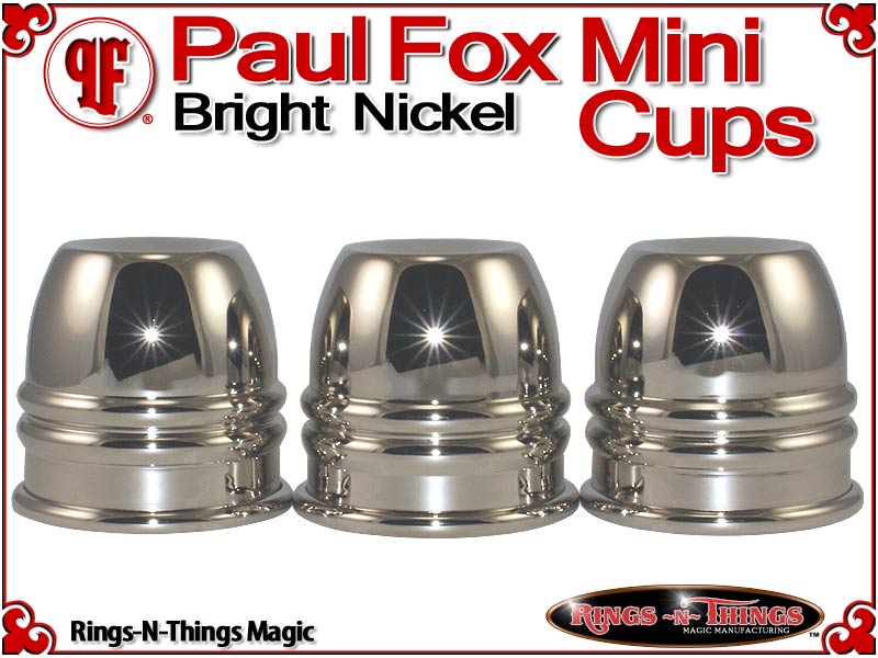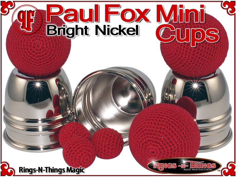 One of the most popular and sought-after style of cups for the cups and balls is the Paul Fox style cup. The Paul Fox cup design was among the first cup created exclusively for cups and balls performers that featured a rounded top. Since its conception and manufacture, many magicians have contributed moves to the performance of cups and balls that can best be accomplished with a rounded top cup. Now the famous Paul Fox design is available in this miniature replica set, allowing the cups and balls performer to bring a small set of cups to any venue and include a performance of the cups and balls in the most "close up" of situations.