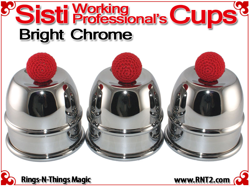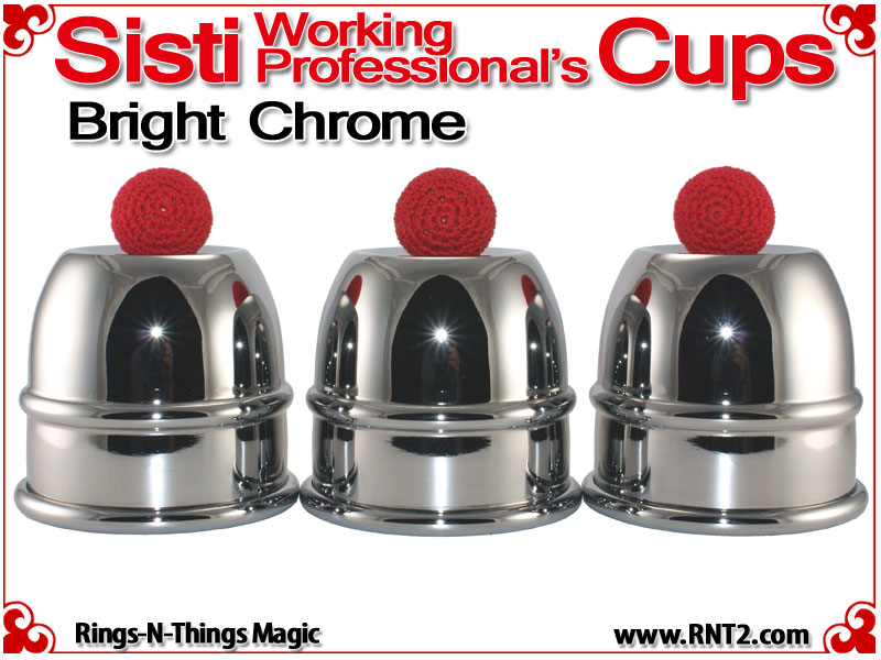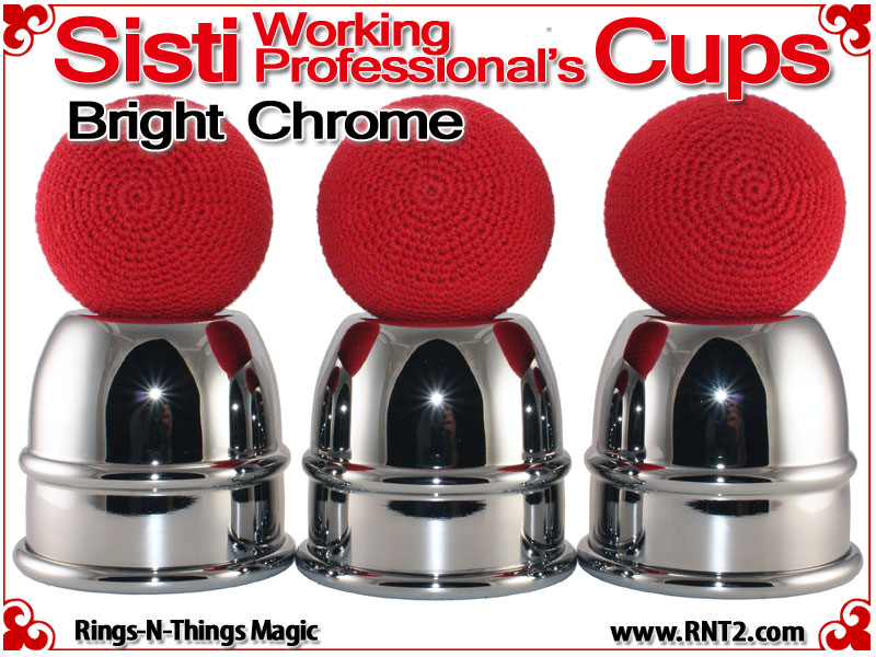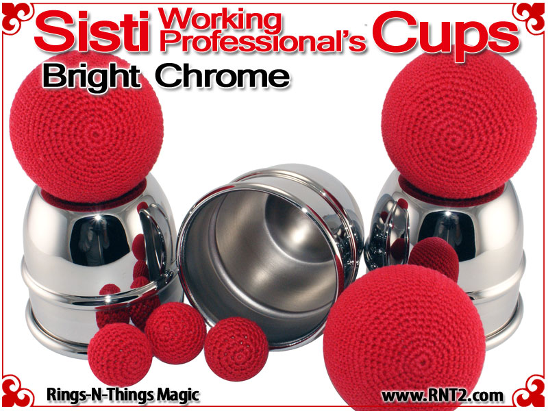 The Sisti Working Professional's Cups are an extremely popular style of cups for the cups and balls. Because of their short 5" stack, the cups are easily transported and more easily used in tighter performance situations, but because of their billiard ball size load capacity and their generous attic space, they produce the same results as a larger set of cups.