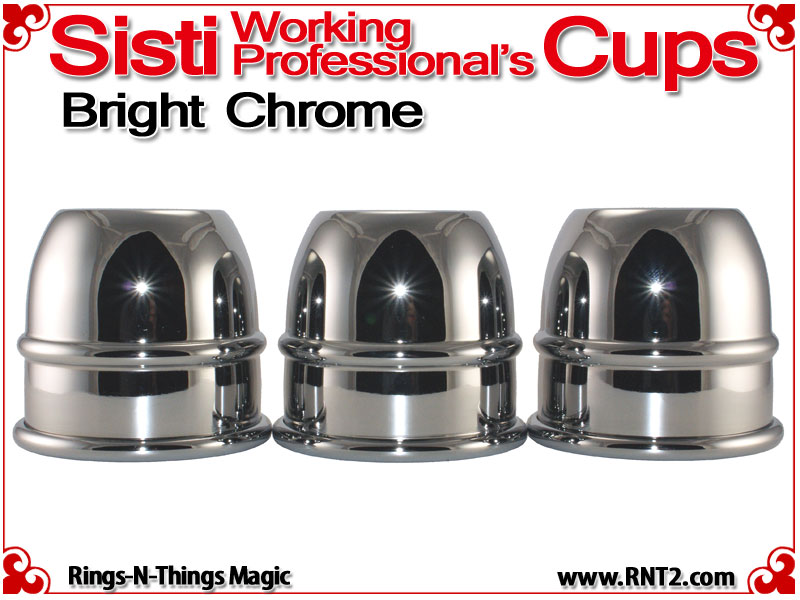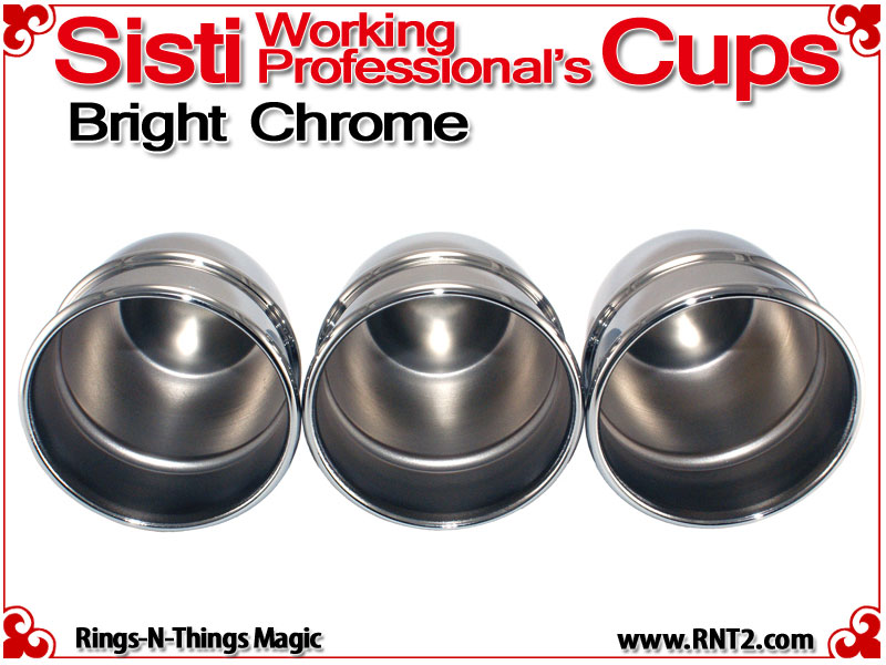 The Sisti Working Professional's Cup design is an original design created and used by professional magician Jim Sisti and includes some later 20th century design elements. The cups are similar in size to the Paul Fox cups, but are shorter, and cosmetically different - as they have only one center bead. The cups were designed to work with 1" balls and the saddle of this cup will hold 3 nested 1" balls with no floating, which is outstanding for a cup with these proportions.