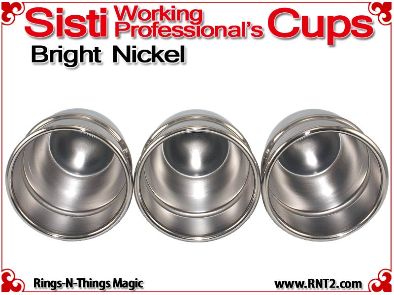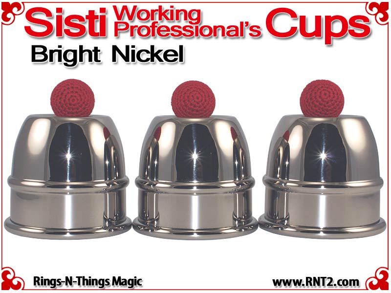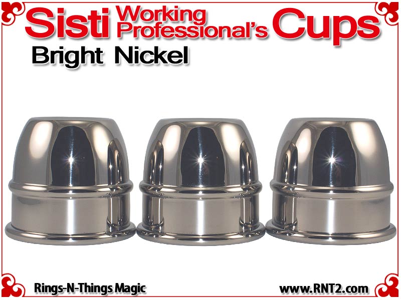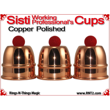 The Sisti Working Professional's Cups are an extremely popular style of cups for the cups and balls. Because of their short 5" stack, the cups are easily transported and more easily used in tighter performance situations, but because of their billiard ball size load capacity and their generous attic space, they produce the same results as a larger set of cups.