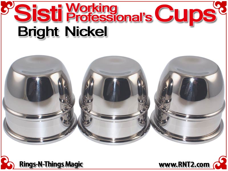 The Sisti Working Professional's Cup design is an original design created and used by professional magician Jim Sisti and includes some later 20th century design elements. The cups are similar in size to the Paul Fox cups, but are shorter, and cosmetically different - as they have only one center bead. The cups were designed to work with 1" balls and the saddle of this cup will hold 3 nested 1" balls with no floating, which is outstanding for a cup with these proportions.